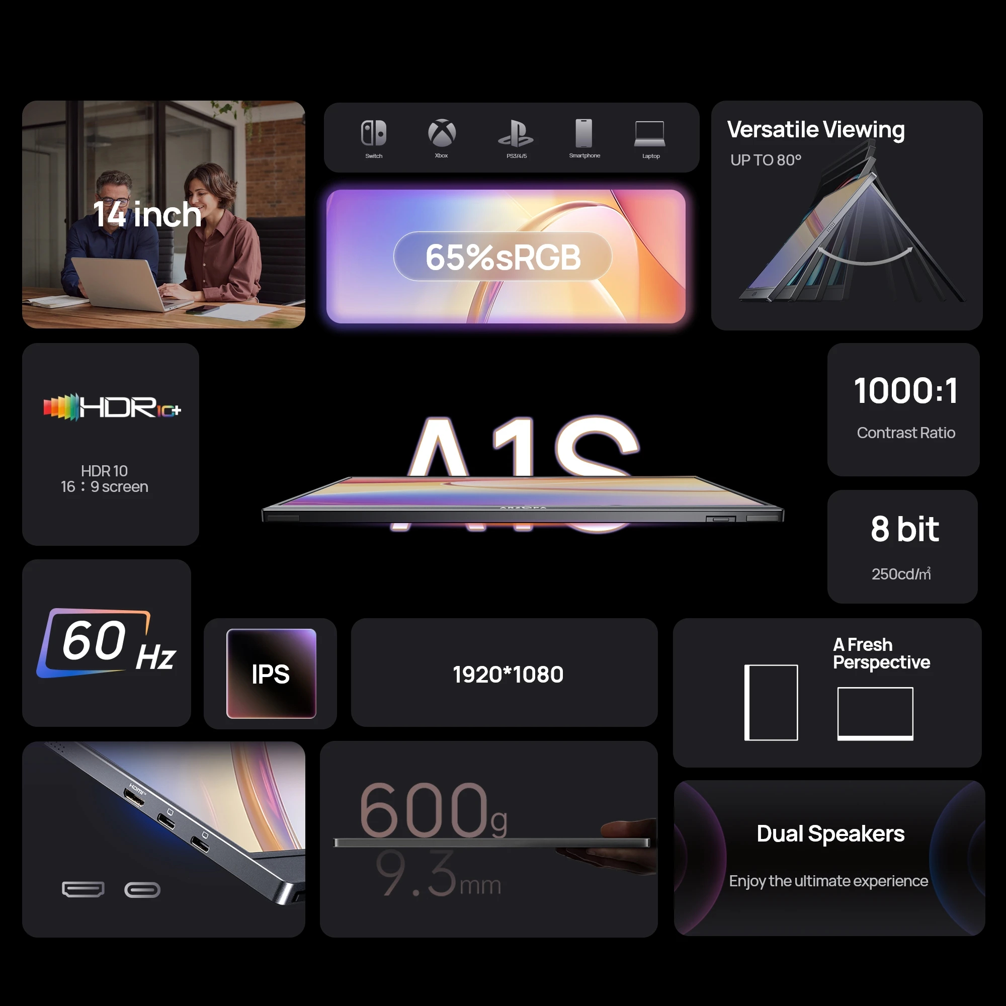 ARZOPA 14 inch 1920*1080P Mini Portable Monitor IPS Gaming External Second Screen for MAC/Laptop/PC/Xbox/PS4/5/Switch/Xbox A1S
